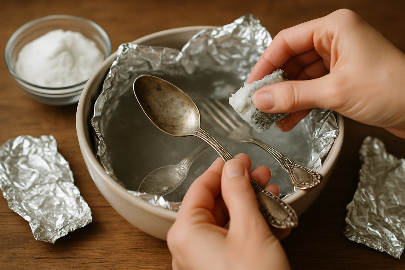 Instrukcja krok po kroku – Jak zrobić i użyć „pasty” (kąpieli) do srebra z sody i folii aluminiowej: